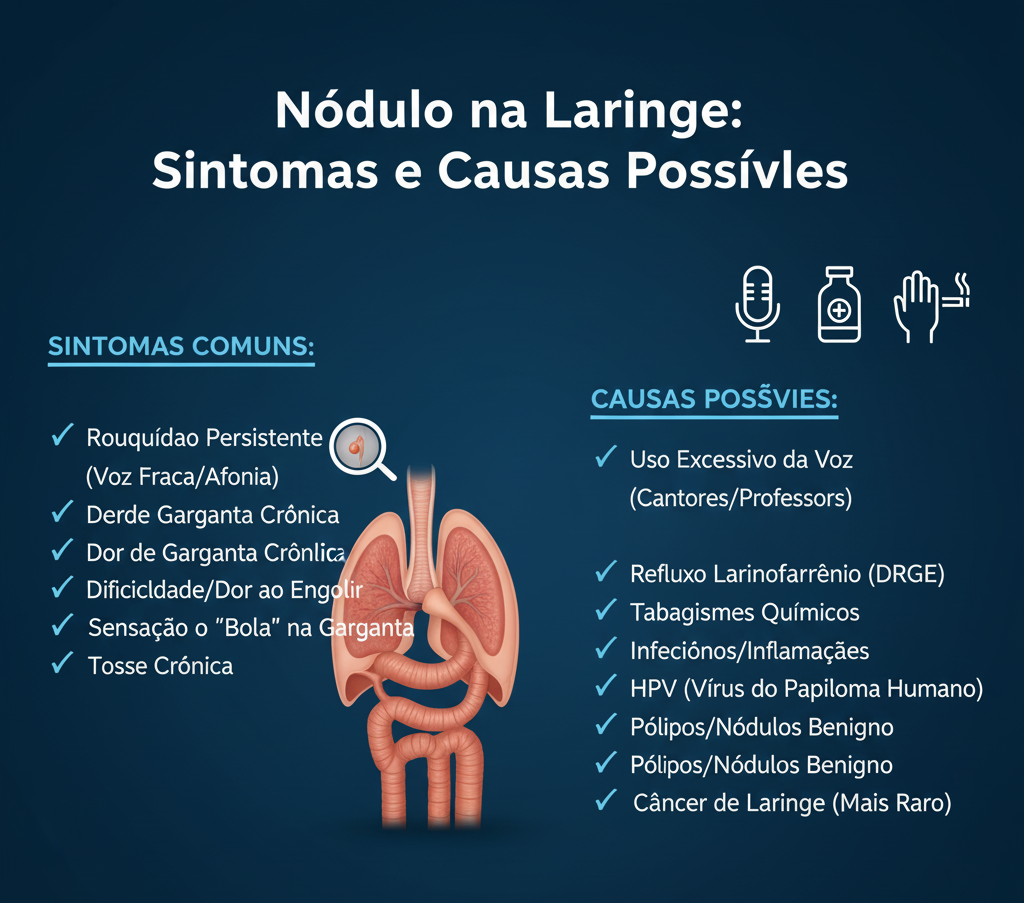 Um nódulo na laringe pode ser apenas um sinal de esforço vocal, mas também pode representar algo mais sério. Observar os sintomas e procurar um especialista são os primeiros passos para garantir um diagnóstico correto e um tratamento eficaz. Rouquidão persistente nunca deve ser ignorada.